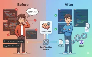 Claude Code の PostToolUse hooks で Prettier と ESLint を自動実行する方法を解説。ファイル編集後に自動フォーマットされる開発環境を構築し、手動作業をゼロにしましょう。husky/lint-staged との併用も紹介。